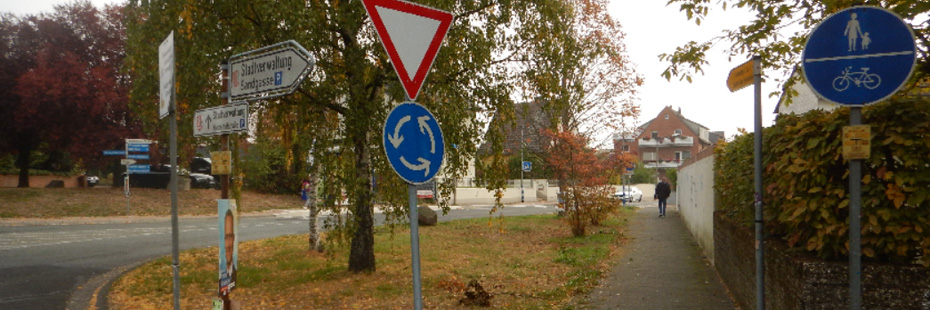 Klicken Sie an die Stelle in der Karte, an der sich die Gefahrenstelle befindet. Klicken Sie mehrfach in die Karte um den Verlauf einer fehlenden oder mangelhaften Radverkehrsverbindung darzustellen. Der Verlauf der Verbindung soll erkennbar sein, muss aber nicht exakt dem Straßen- oder Wegeverlauf wiedergeben.